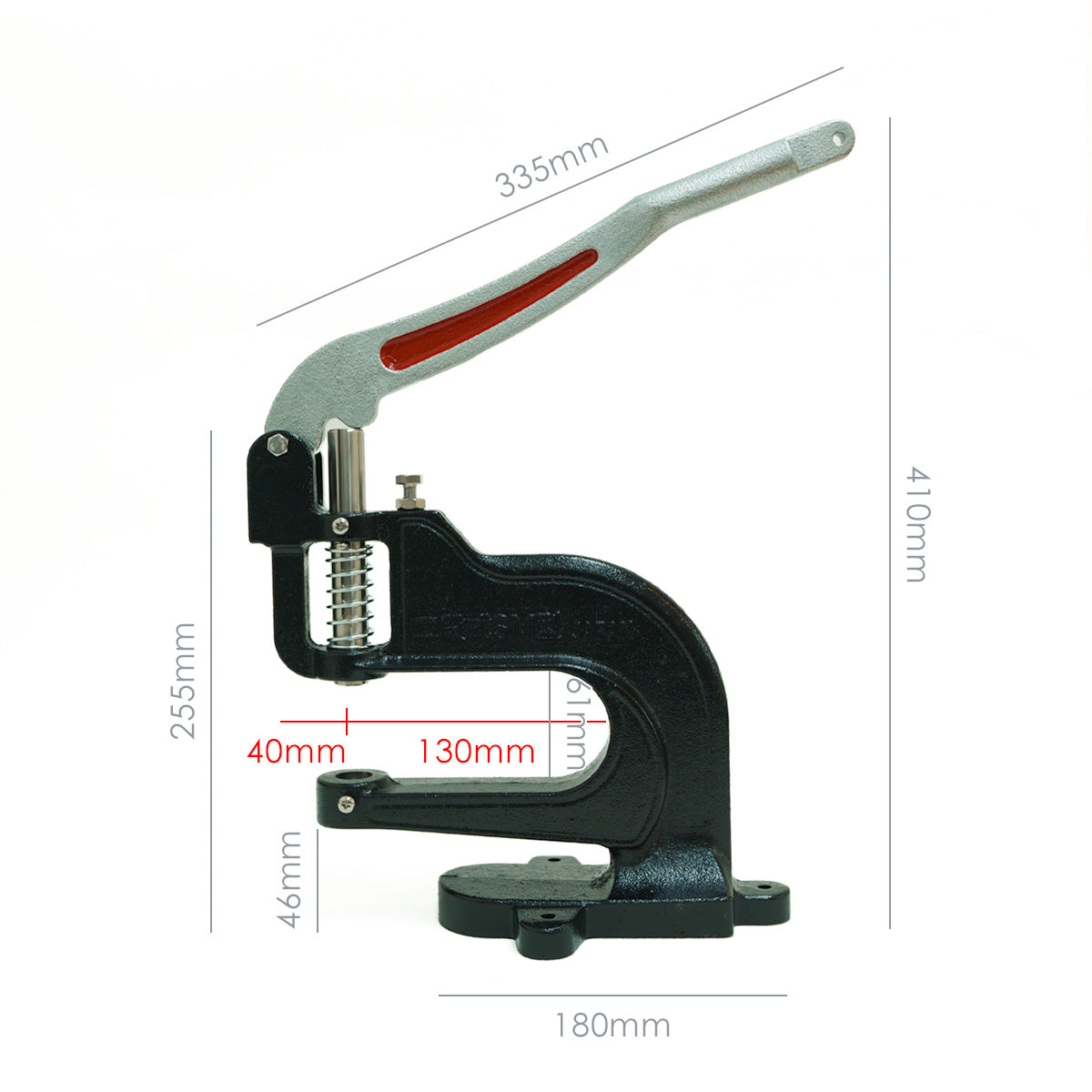 プレス位置が二段式なので、鞄等の袋状や筒状の形でもストレスなく作業可能。
